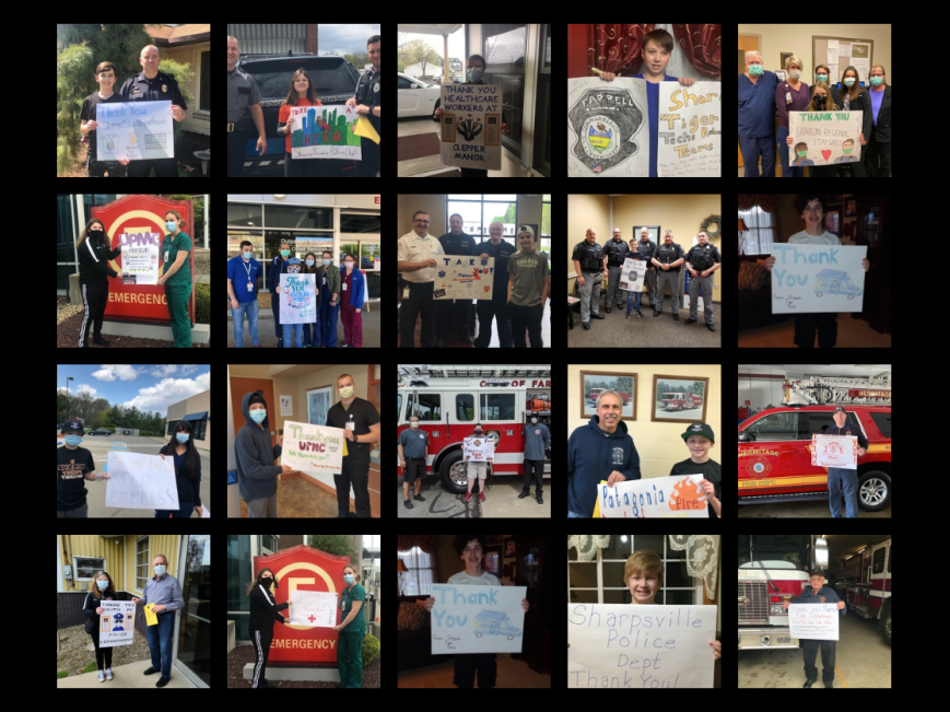 The Sharon Tiger Techs have been working to show appreciation to area first responders and essential workers. Each member made a sign and they or another member delivered it safely. We know that we have only thanked a small portion of responders in our area. For those not mentioned in the video, please know we thank you for your dedication and commitment. For every first responder and essential worker…thank you! We are #ShenangoValleyStrong