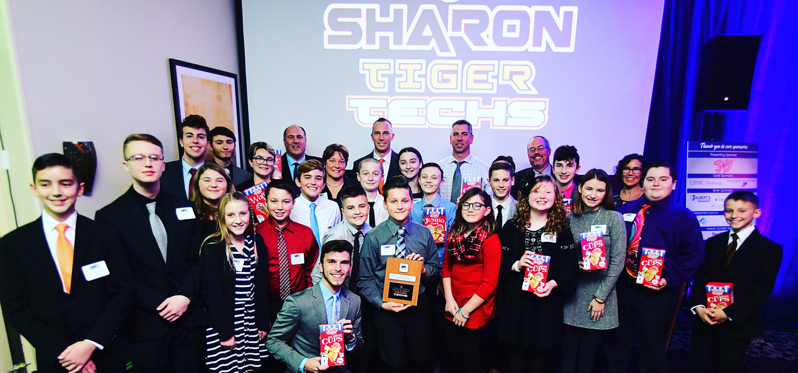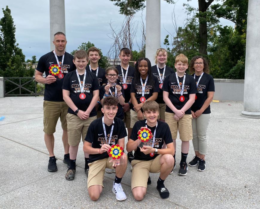 The Sharon Tiger Techs (Team Black) recently competed at the FIRST LEGO League Razorback Open Invitational at the University of Arkansas. While at this event, the Techs competed against 80 teams from around the United States and the World. The Sharon team competed in five rounds of robot game and had judging in robot design, project innovation, and Core Values. After three days of competition, the Techs received First Place in Core Values, First Place with their Pit Design, 13th Place with their Robot Performance, and their coach, Mr. Tomko, received the Hall of Fame Award for coaching. The team qualified to attend this event after being First Place Champions at the Erie Regional Championship back in January.